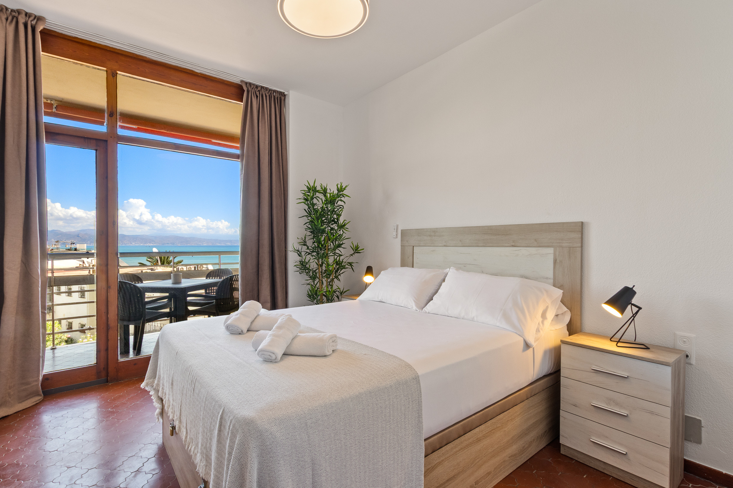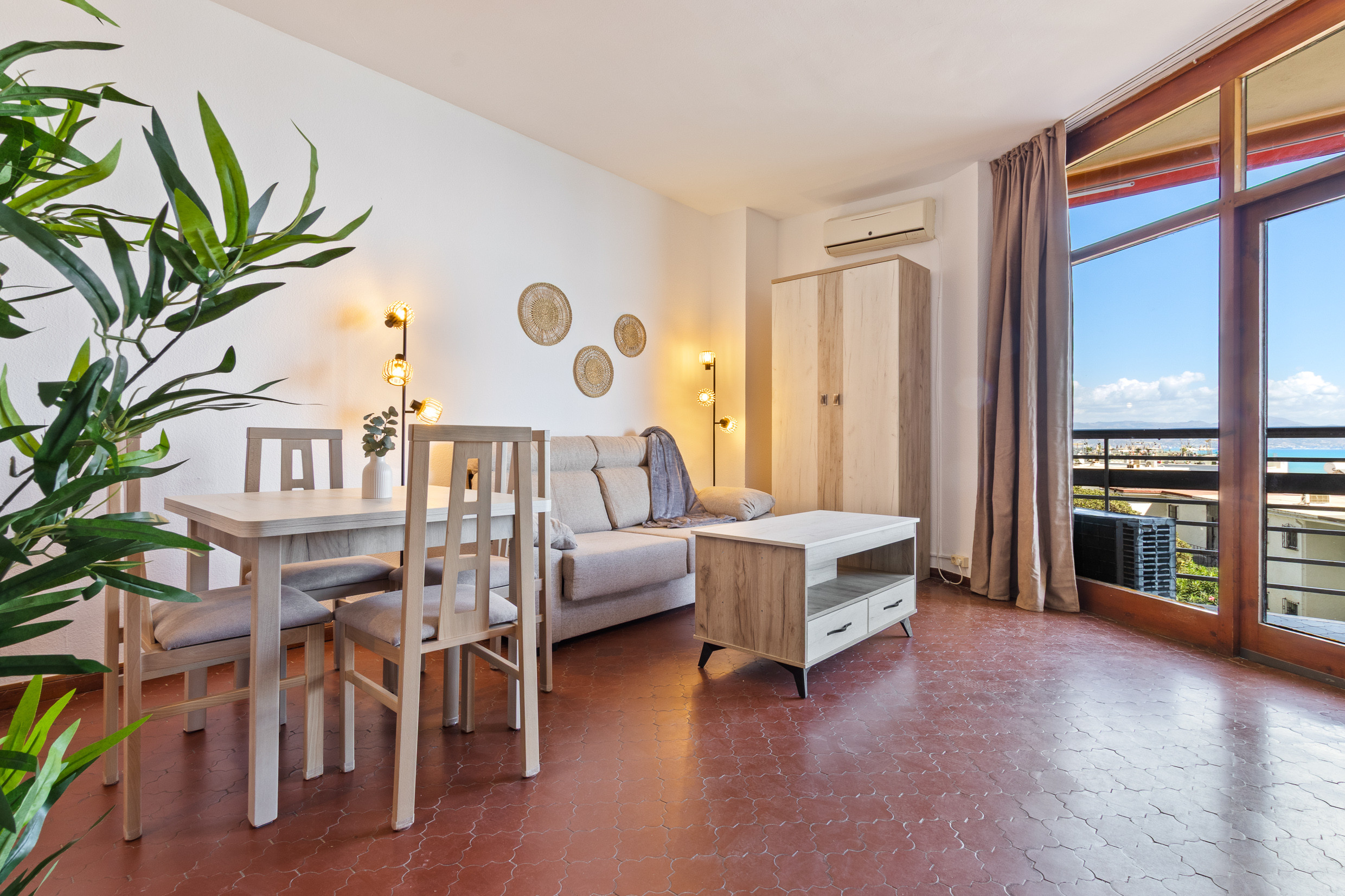 Este precioso apartamento ofrece una experiencia inolvidable con vistas espectaculares al mar. El salón-comedor está diseñado para tu comodidad, con un cómodo sofá cama (1'90m x 1'40 m), una Smart TV y wifi de alta velocidad, además de un amplio armario empotrado para un almacenamiento óptimo. La joya del apartamento es su magnífica terraza perfecta para disfrutar de comidas al aire libre con las impresionantes vistas como telón de fondo.