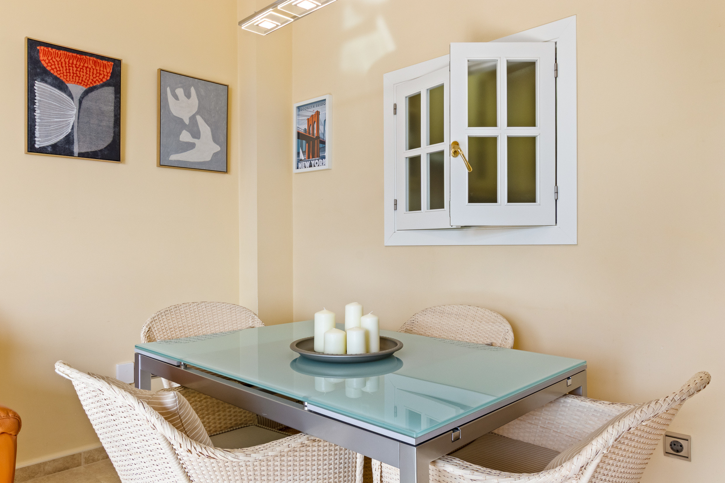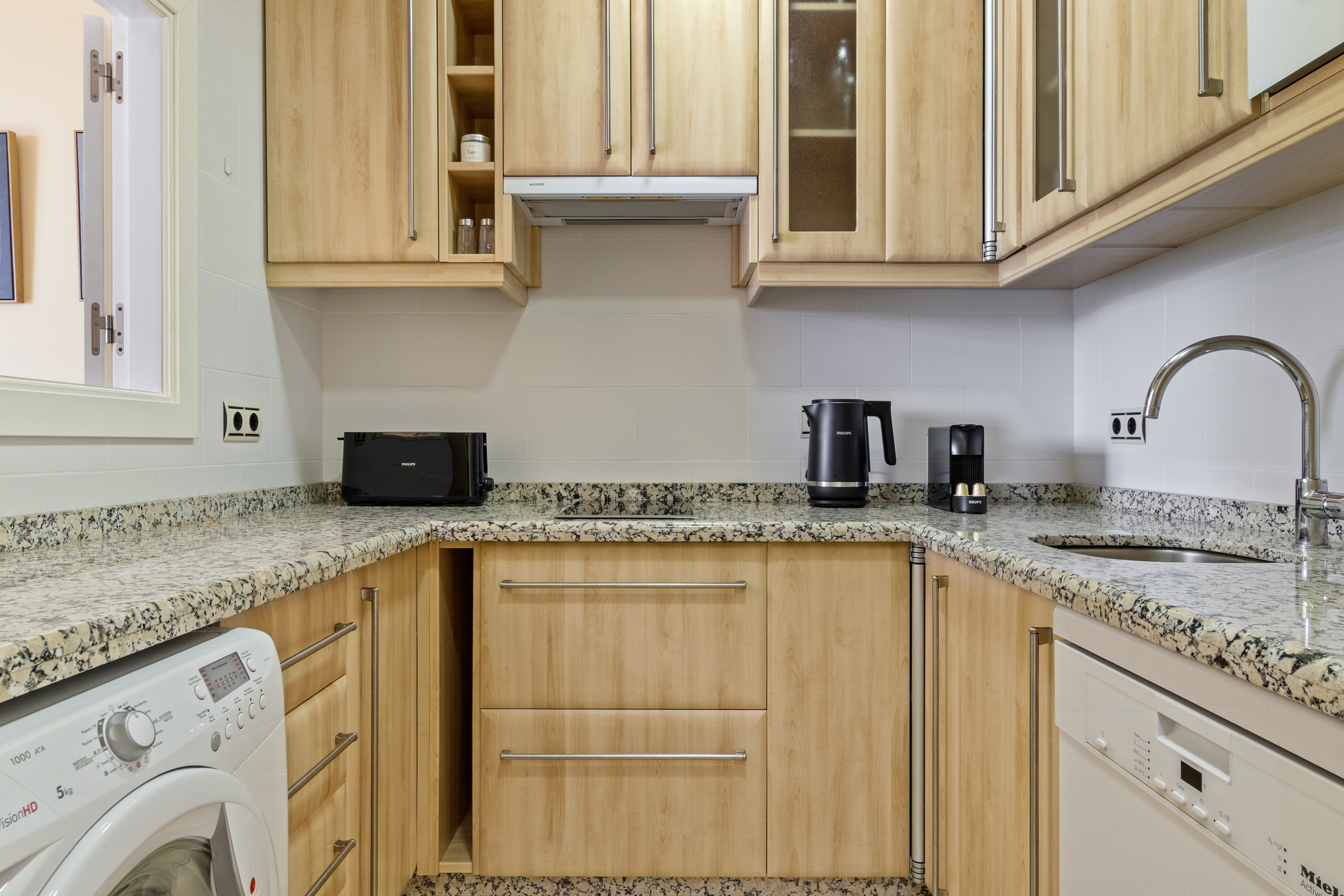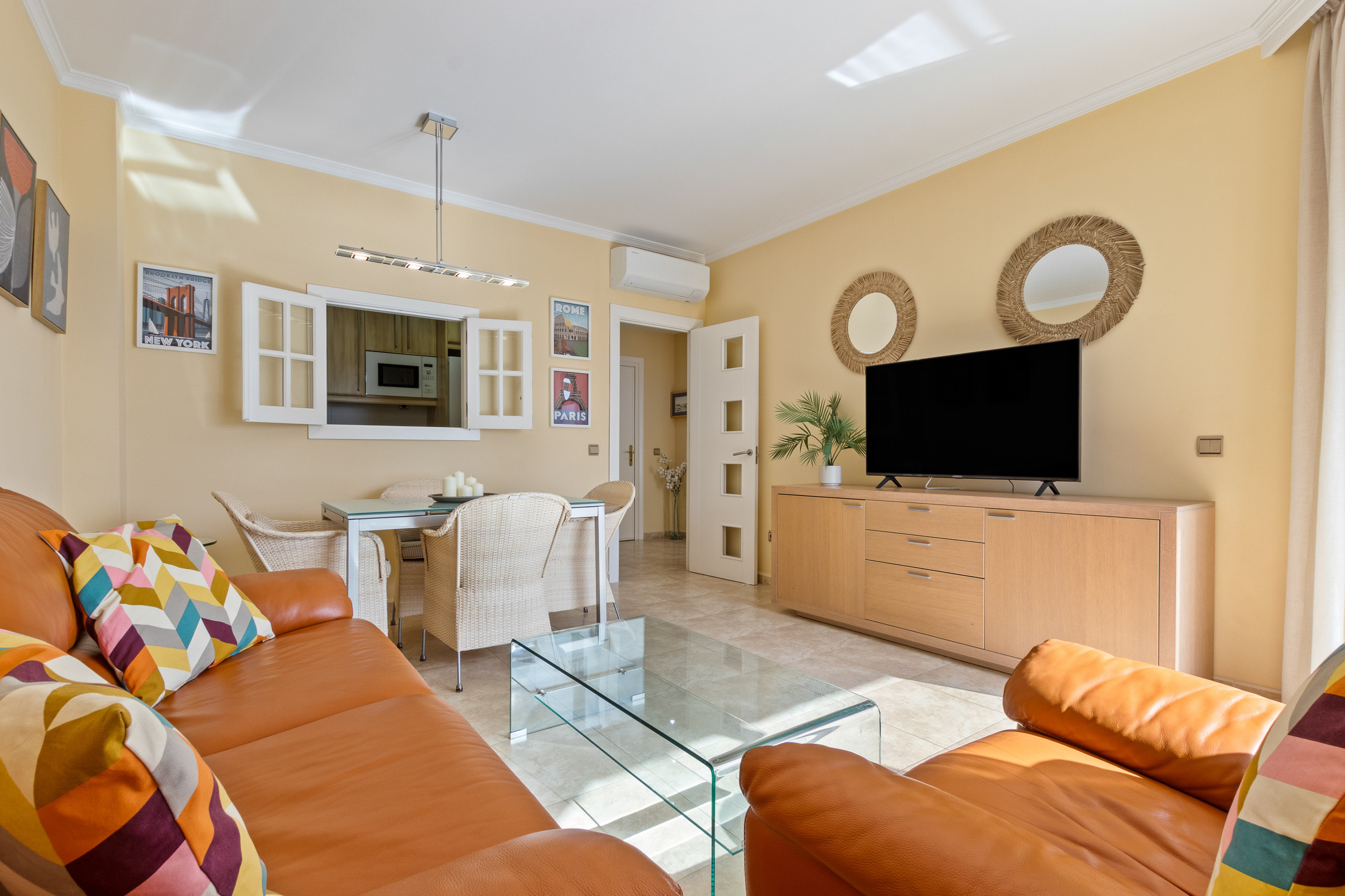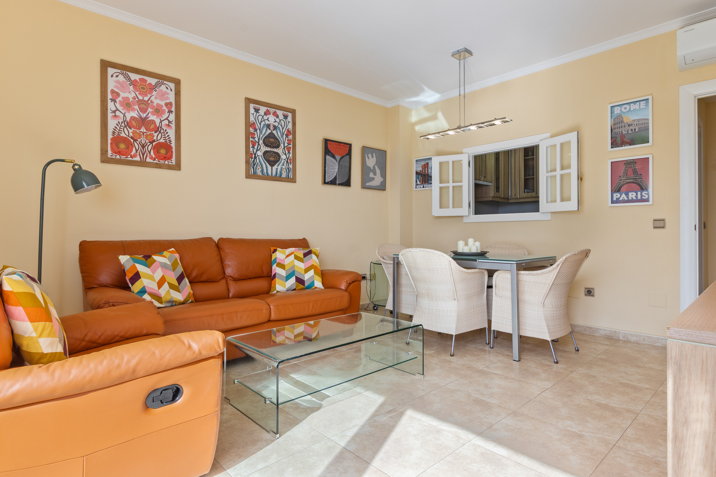 • Cocina integrada al salón, totalmente equipada para cocinar como en casa.