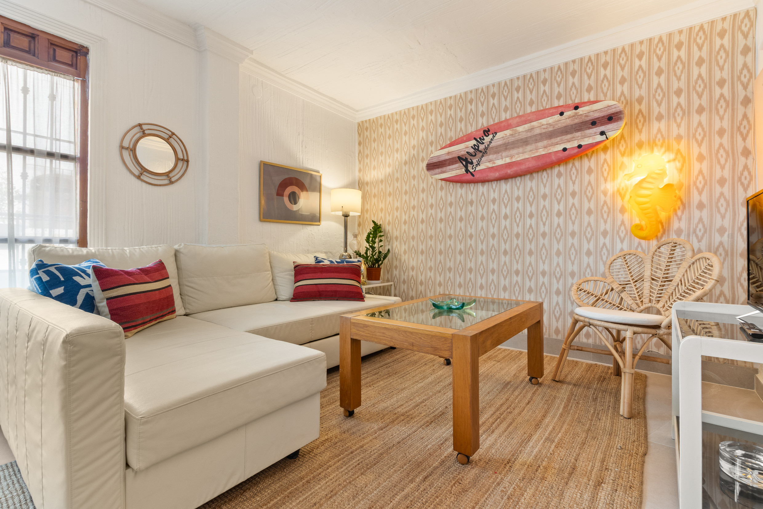 This fun and comfortable two-bedroom apartment is the perfect choice to enjoy a relaxing holiday in the heart of Torremolinos. Located on the first floor without a lift, it offers an excellent location, close to the stairs that lead directly to the beach, surrounded by bars and restaurants, where you can enjoy the vibrant atmosphere of the area.