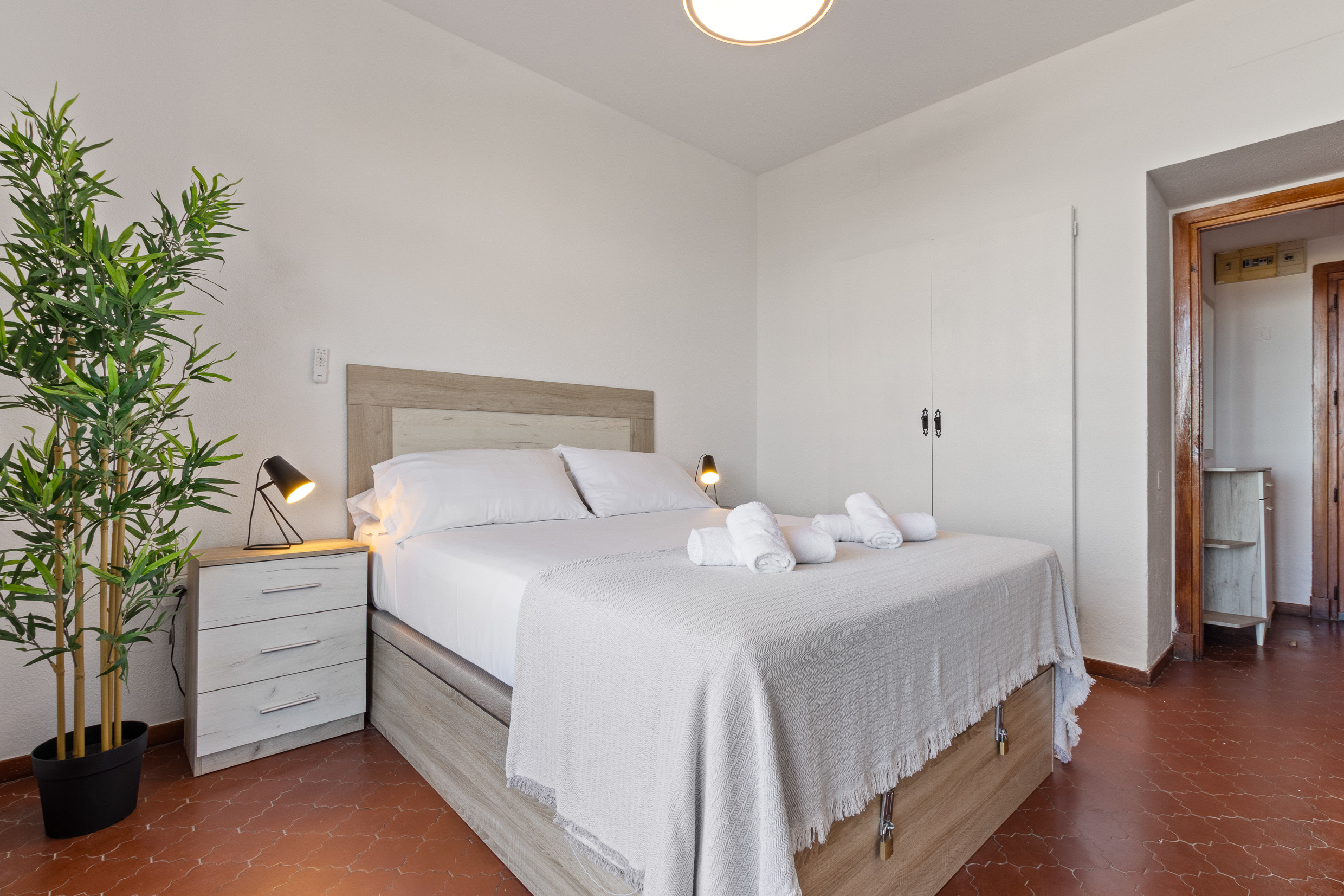 The main bedroom features a comfortable bed (1.50m x 1.90m) and a built-in wardrobe with great capacity, providing all the necessary space for a worry-free stay.