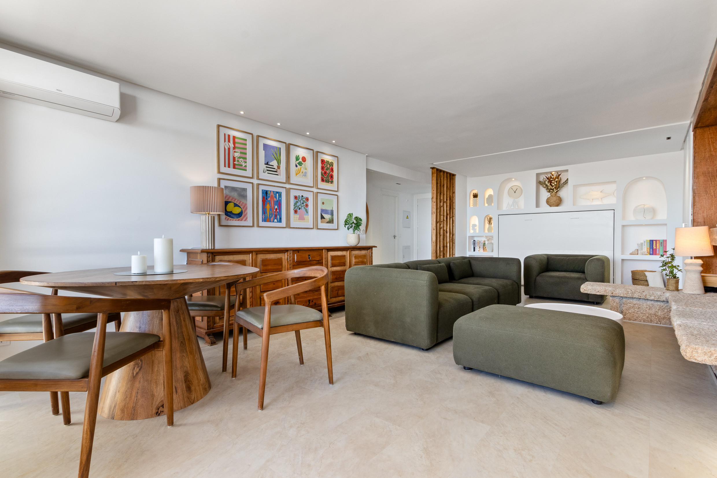 The spacious and bright living-dining room is designed to offer you a relaxing space, with a Smart TV to enjoy your favourite series and movies, and free high-speed wifi to keep you connected at all times. From the charming private terrace, you can delight in stunning sea views, a perfect place to enjoy a quiet morning or a glass of wine at sunset.