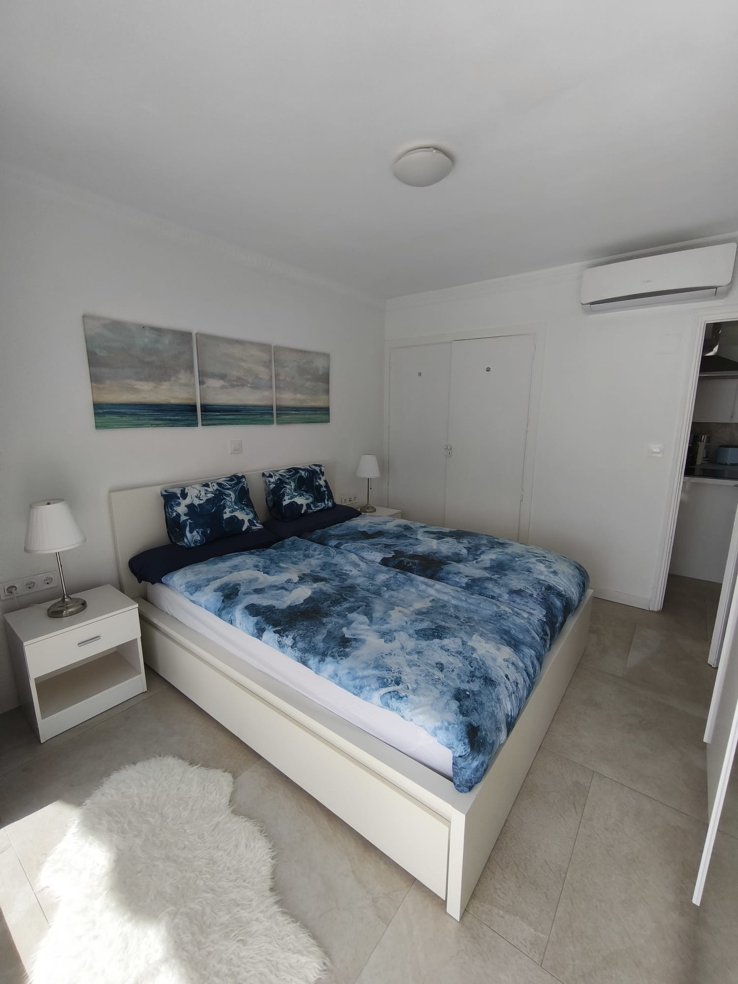 The bedroom has a double bed of 160 cm, also with air conditioning and storage space. The bathroom has a bathtub with shower option, washbasin and all essential elements.