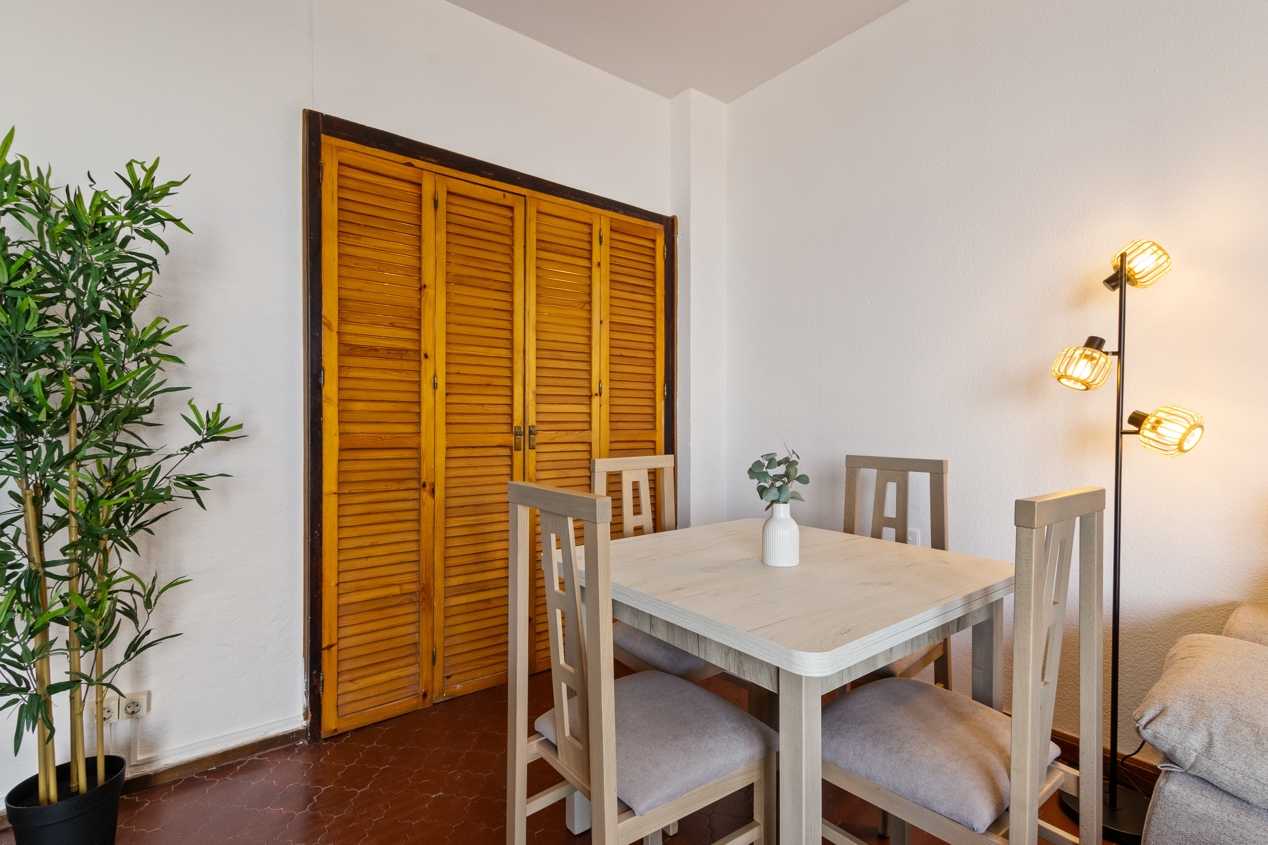 Appartement à Torremolinos qui possède 1 chambre(s) et Capacité pour 4 personnes. Logement de 57 m² accueillant et totalement équipé, situé en front de plage, avec vue sur la mer et la montagne. La location se trouve à 0 m de la plage de roche, 300 m de la plage de sable "Playa de Bajondillo", 350 m du supermarché "Carrefour Express", 400 m de la gare "Estación de cercanías Renfe Torremolinos", 400 m de la ville "Calle San Miguel", 550 m du supermarché "Supermercados Dia", 700 m de la plage de sable "Playa de la Carihuela", 750 m du supermarché "Mercadona", 1 km de la gare routière "Estación de autobuses de Torremolinos", 2 km du parc "Parque de la Batería", 2 km du domaine de Golf "Golf Coast Los Alamos", 3 km de l'hôpital "Hospital Santa Elena", 7 km de l'aéroport "Aeropuerto de Málaga-Costa del Sol", 8 km de l'aéroport "Aeropuerto de Málaga-Costa del Sol" et il est situé dans une zone idéale pour familles zone et près de la mer.Elle dispose de ascenseur, 7 m² de terrasse, lave-linge, fer à repasser, accès internet (wifi), sèche-cheveux, chauffage pompe à chaleur, climatisation dans le salon, piscine collective, parking extérieur même bâtiment, 1 Télévision.La cuisine américaine, à vitrocéramique, est équipée avec réfrigérateur, micro-ondes, vaisselle/couverts, ustensiles/cuisine, cafetière, grille pain et bouilloire.